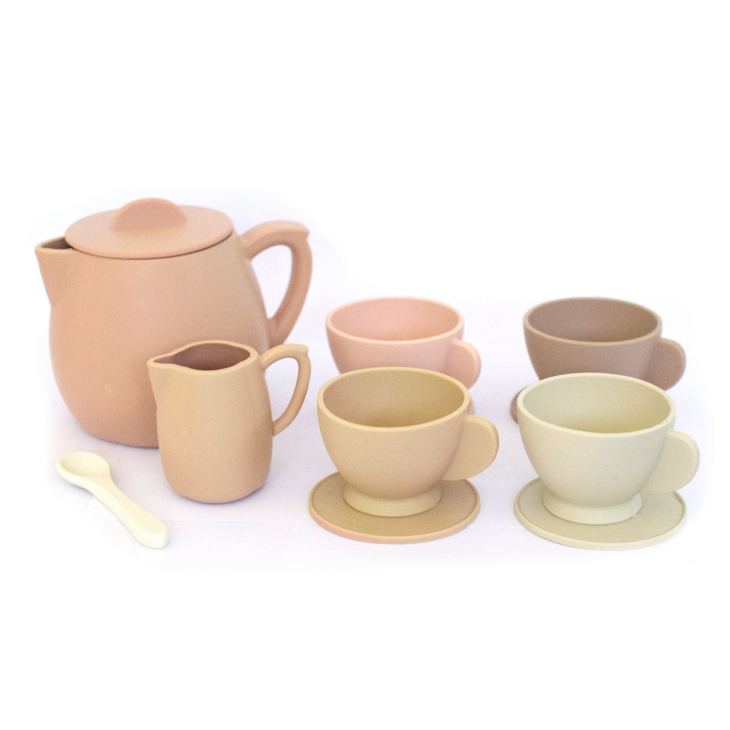 Pour, pretend, and play all day. This soft silicone tea set is made for big imagination. Kids can brew flower teas from the garden, host a teddy picnic, or run a backyard café. The open shapes make it easy to fill from a gentle water stream, then tip and pour without spills or clinks.